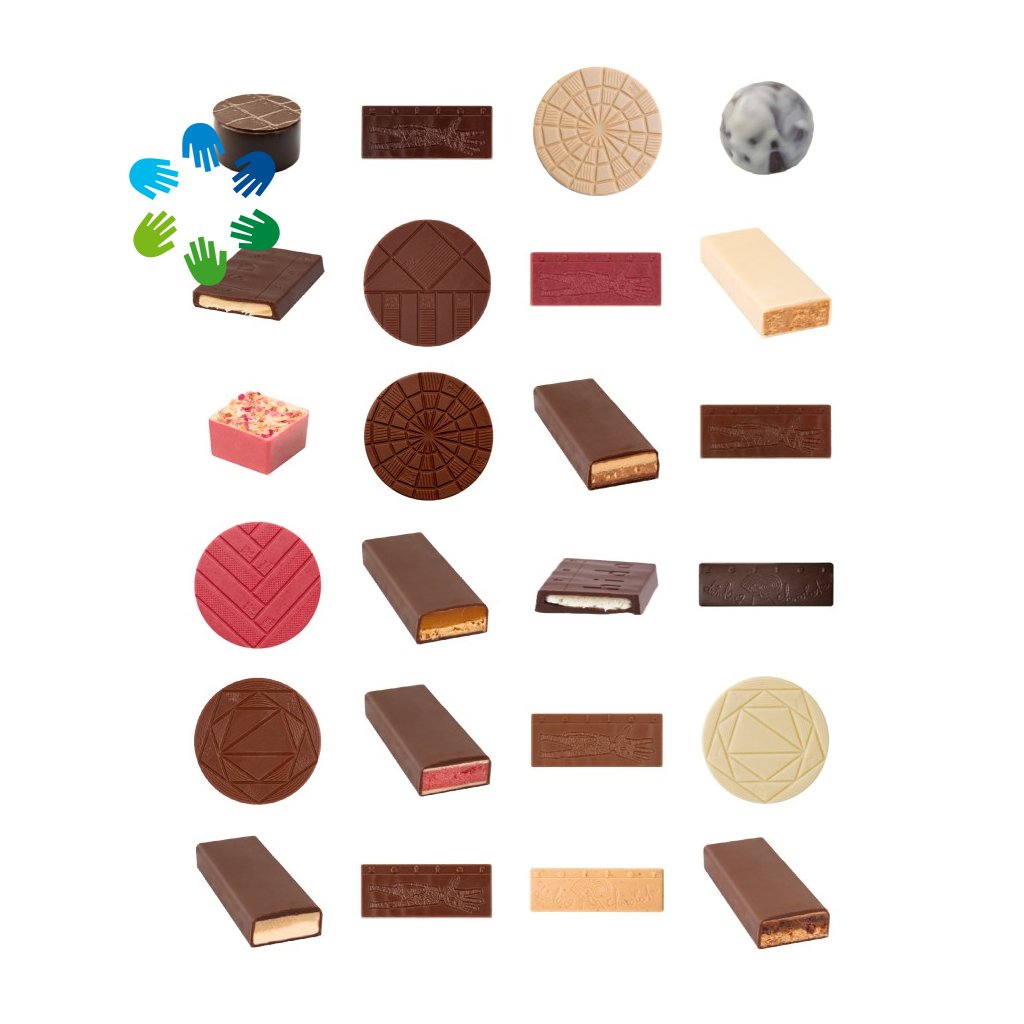 Úžasný čokoládový adventní kalendář s výběrem těch nejlepších čokolád jedné z nejlepších čokoládoven světa ve 24 druzích, barvách a chutích bez alkoholu.