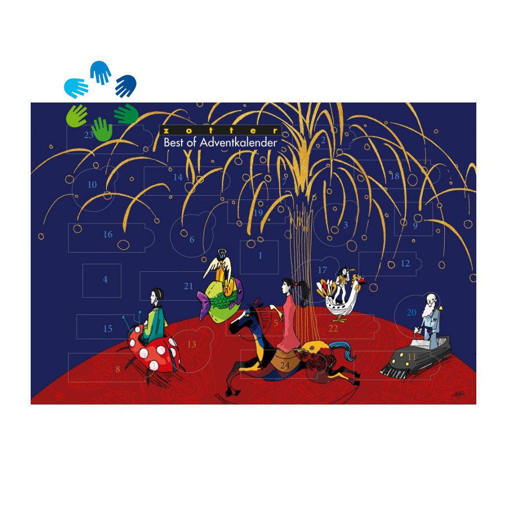 Úchvatný čokoládový adventní kalendář je fantastickou oslavou rozmanitosti organických čokolád vyráběných poctivě přímo z kakaových bobů a dalších férově obchodovaných surovin v čokoládovně mistra Josefa Zottera. V tomto adventním kalendáři objevíte ty nejlepší ručně plněné čokolády, pralinky, čokoládová cédéčka, čokolády na pití, čokolády s ovocnými šťávami i čistě ovocné, čisté kousky čokolád z kakaa konkrétního původu, "geometrické" čokolády i malé čokoládky s krémovou náplní. Skvělých 24 různých druhů a chutí od ořechové, přes ovocné či karamelové až po 24. čokoládu se sezónní náplní s vánočním perníkem.