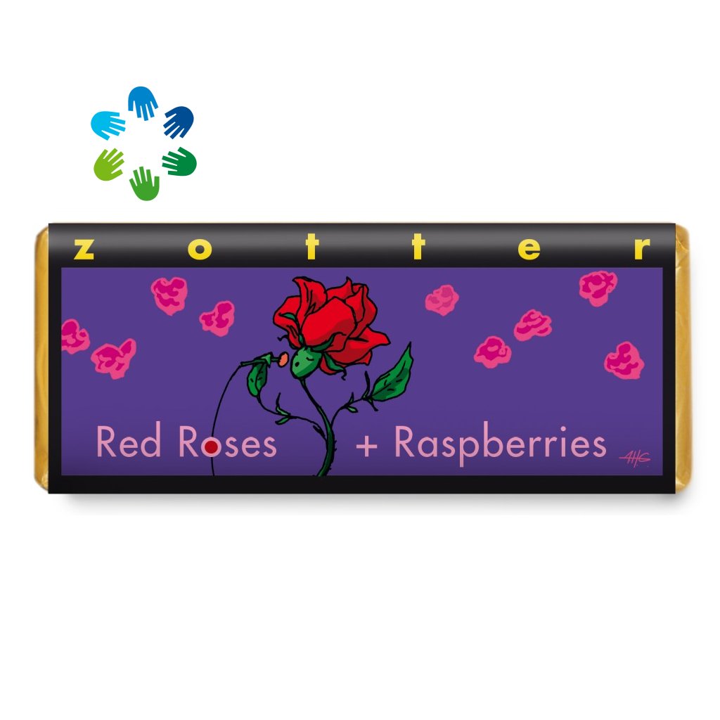 Bio plněná mléčná čokoláda Červené růže a maliny, 70 g