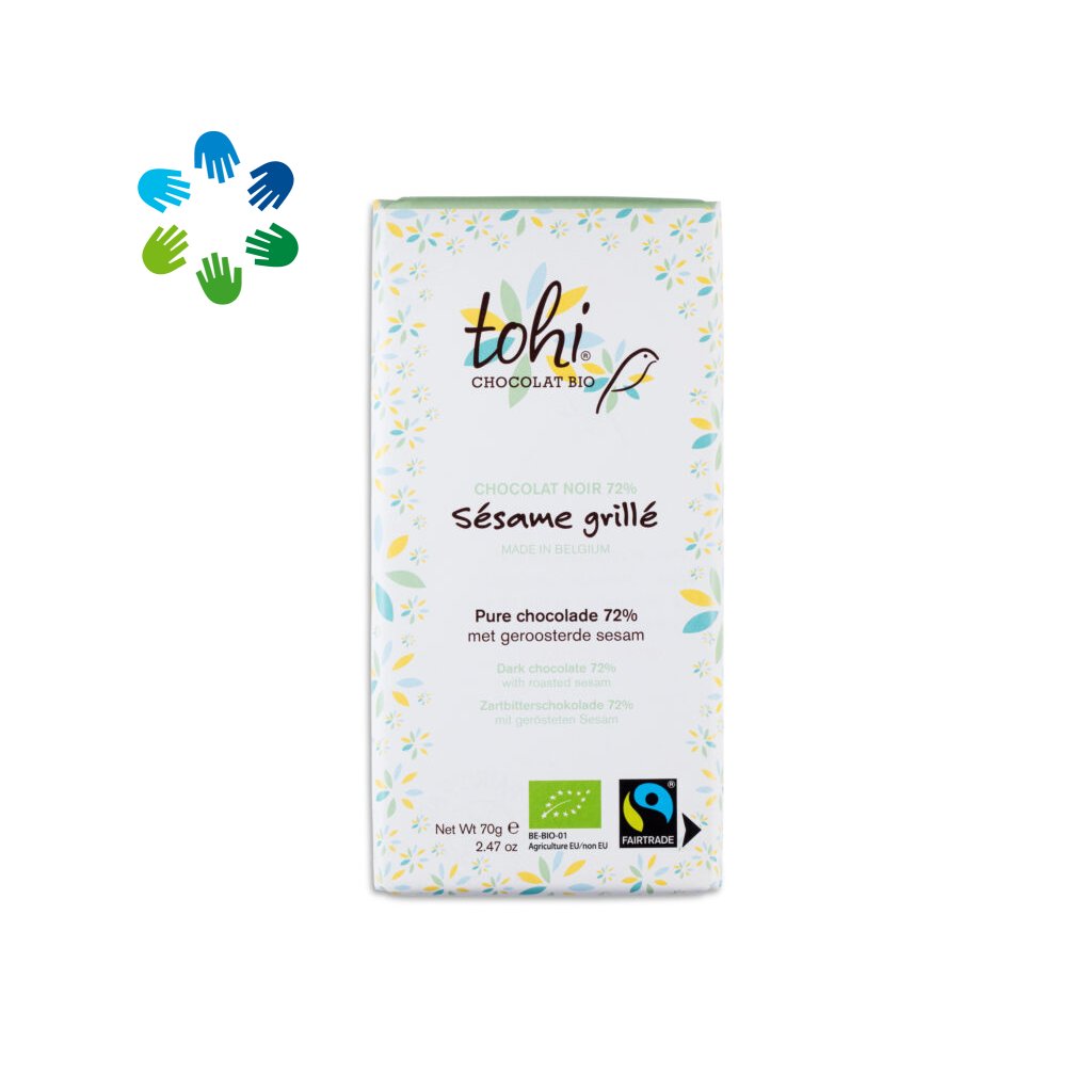 Bio Hořká čokoláda s praženým sezamem 72%, 70 g